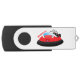 This cute red hovercraft is ready for adventure. Drawn in in fun cartoon illustration style for all terrain excitement!