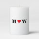 Cute red heart custom couple modern monogram initials elegant chic Pillar Candle