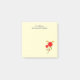 Personalized sticky notes with a whimsical illustration of several red flowers with big hearts attached to a stem with green leaves. 2 quaint yellow butterflies hovering nearby. Light yellow background.