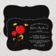 A whimsical illustration with several red flowers with big hearts attached to a green stem. 2 yellow butterflies hovering nearby. Set on a black background. Personalize this mother's day brunch invitation with your own party details.