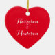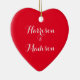 Personalized custom script calligraphy couple’s names romantic elegant chic red heart Christmas Ceramic Ornament. Available in different shapes and materials.