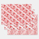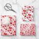 Romantic Cute Red Hearts Pattern Valentine's Day Set of 3 Wrapping Paper Sheets.