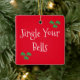 Funny and fun Christmas ornament. Red with green bells. Jingle all the way!
