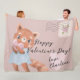 This cute, custom Valentine blanket features a pastel, dusty pink theme with a sweet little red panda. A postal stamp is placed in the top right to resemble a mailed letter. A sample name is printed over a heart at the bottom which you can personalize to include your own name or other custom Valentine's day message.