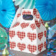 Craft red plaid hearts pattern with dotty background on party products and favors.