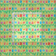 Spring is in the air with this cute floral fabric featuring whimsical tulips decorated with fun patterns including polka dots, stripes and swirls, in shades of red, turquoise, orange and purple on a green background.