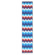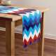 A 14” x 72” table runner featuring a colorful, cute pattern design of red, white, and blue chevrons.