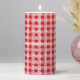 Cute red and white lace checkered plaid vintage farmhouse style pattern Christmas holiday party Pillar Candle.