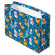Cute Reindeer and Snowman Blue Large Gift Bag