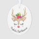 A cute reindeer face decorates this girl baby's first Christmas ornament. Personalize it with your baby girls name on the front and photo on the back. Designed for you by Blackberry Boulevard.