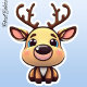 Cute Reindeer, Deer with Antlers, Cartoon Graphic Sticker