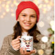Add a warm, whimsical touch to their holiday with this personalized reindeer face mug! Featuring a sweet cartoon reindeer with large eyes, glowing antlers wrapped in string lights, and a cozy red scarf, this custom mug also showcases your child’s name in festive lettering. Perfect for sipping cocoa, tea, or warm cider, this mug makes a magical Christmas gift for kids, tweens, or animal lovers. Ideal as a stocking stuffer, gift set item, or keepsake they'll use every season.
