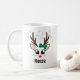 Cute Reindeer Girl Green Bow Custom Name Christmas Coffee Mug