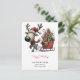 Cute reindeer wearing a Santa hat pulling a sleigh filled with gifts on a postcard. Text can be changed. AI assisted graphic purchased with commercial use. Artwork: RedHeronLighthouse