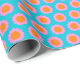 This vibrant and playful wrapping paper features a bright turquoise, pink, and orange retro 60s pop flower pattern.