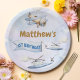 Cute Retro Blue Airplane 1st Birthday Paper Plates