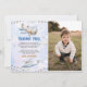 Cute Retro Blue Airplane 1st Birthday Photo Thank You Card