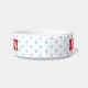 Cute Retro Blue Polka Dots Dog Puppy Pet Name Food Bowl