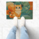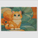 This charming design features an adorable fluffy orange cat with big expressive eyes, sitting against a vibrant retro‑inspired background of colorful abstract floral shapes. The playful mix of warm tones and soft geometric patterns creates a cheerful, cozy aesthetic that works beautifully across a wide range of products.