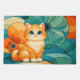This charming design features an adorable fluffy orange cat with big expressive eyes, sitting against a vibrant retro‑inspired background of colorful abstract floral shapes. The playful mix of warm tones and soft geometric patterns creates a cheerful, cozy aesthetic that works beautifully across a wide range of products.
