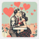 Cute Retro Couple Kissing Pop Art Hearts Square Sticker