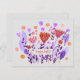 Cute retro doodle watercolor flowers with violet and coral. Retro floral illustration Easter card