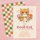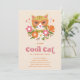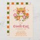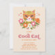 Cute Retro Floral Cool Cat First Birthday Party Invitation