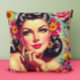 Cute Retro Floral Pin-up Portrait Throw Pillow