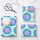 Cute Retro Flower Pattern in Mint and Purple Wrapping Paper Sheets