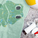 Create an un-froggettable gift when you add a name to this beach towel. It features a cute retro style frog illustration. The green cartoon frog has blue and yellow speckles. Your name or other text appears in bright blue lettering.