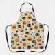 This design presents a cute and whimsical Halloween pattern filled with a delightful assortment of classic spooky icons. The background is a light cream color, providing a soft contrast to the bold designs. The pattern includes playful jack-o'-lanterns with different expressions, black cats with bright yellow eyes, smiling skulls, and friendly bats with orange wings. Scattered throughout are spiders, crescent moons, stars, mushrooms, and magical symbols, all adding to the enchanting Halloween atmosphere. The color palette features striking blacks, oranges, and yellows, creating a lively and festive design perfect for Halloween decorations, clothing, or party themes. The overall feel is fun and charming, ideal for celebrating the spooky season with a touch of sweetness.