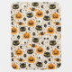 This design presents a cute and whimsical Halloween pattern filled with a delightful assortment of classic spooky icons. The background is a light cream color, providing a soft contrast to the bold designs. The pattern includes playful jack-o'-lanterns with different expressions, black cats with bright yellow eyes, smiling skulls, and friendly bats with orange wings. Scattered throughout are spiders, crescent moons, stars, mushrooms, and magical symbols, all adding to the enchanting Halloween atmosphere. The color palette features striking blacks, oranges, and yellows, creating a lively and festive design perfect for Halloween decorations, clothing, or party themes. The overall feel is fun and charming, ideal for celebrating the spooky season with a touch of sweetness.