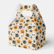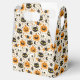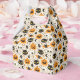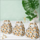 This design presents a cute and whimsical Halloween pattern filled with a delightful assortment of classic spooky icons. The background is a light cream color, providing a soft contrast to the bold designs. The pattern includes playful jack-o'-lanterns with different expressions, black cats with bright yellow eyes, smiling skulls, and friendly bats with orange wings. Scattered throughout are spiders, crescent moons, stars, mushrooms, and magical symbols, all adding to the enchanting Halloween atmosphere. The color palette features striking blacks, oranges, and yellows, creating a lively and festive design perfect for Halloween decorations, clothing, or party themes. The overall feel is fun and charming, ideal for celebrating the spooky season with a touch of sweetness.