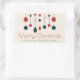 Cute Retro Merry Christmas Red Blue Custom Rectangular Sticker