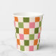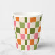 Cute Retro Orange Pink Green Checkerboard Pattern Paper Cups