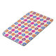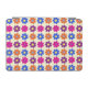 Retro style pattern of blue, pink, purple and orange penny flowers.