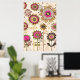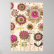 Cute retro pink, brown floral pattern custom poster