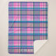 Personalized Cute Preppy Retro Plaid Pattern in Pink and Blue Sherpa Blanket