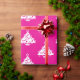 Cute Retro Pink White Christmas Tree Pattern Wrapping Paper