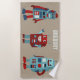 Take your robot to the beach with this fun personalized beach towel. this towel features cute illustrations of retro style robots in shades of blue and red against a tan colored background. There's a spot to add a name or other text in ivory colored lettering.