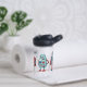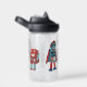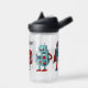 Stay hydrated in sci-fi style with this fun water bottle. It features cute illustrations of retro style robots in shades of red and blue and is ready to be personalized with a name in navy blue lettering. The graphics wrap around the bottle.