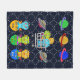 The original design on this ultra-soft fleece blanket is out of this world! On a night sky background of midnight blue & star formations are a mix of pieced felt looking ringed planets, flying saucers, a shopping cart full of retro-style toy robots, & a funny robot variation of the classic trio of "See no Evil, Hear No Evil, Do No Evil" & all in bright neon like colors.
