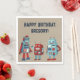 Add a vintage sci-fi touch to any party with these custom napkins. Featuring illustrations of cute retro style robots in shades of red and blue against a tan background, these are ready to be personalized with your custom message, making them perfect for birthday parties for boys and robot fans of all ages.