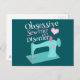 This pretty retro seamstress gift features a cute vintage sewing machine under the funny quote Obsessive Sewing Disorder. A great teal postcard for someone who likes to sew and make alterations and clothing.
