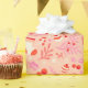 A cute retro-style Christmas-themed pattern featuring stockings, Santa hats, baubles, and holly in blush pink and red colors. A perfect wrapping paper design for all your Christmas gifts.