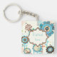 Cute retro turquoise blue floral pattern custom keychain