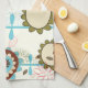 Cute retro turquoise blue floral pattern custom kitchen towel