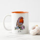 Cute Robin Bird & Personalized Text Two-Tone Coffe Coffee Mug