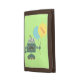 A cartoon of a cute green smiling robot on wheels that has blue and yellow balloons in its robotic hands. Colourful, adorable and cheerful design for kids who love science fiction or robot toys! Personalise with child's name on balloon.