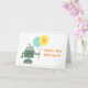 Send your birthday wishes to the birthday boy with this cute greeting postcard which has a cartoon of a happy green robot on wheels. The robot is holding on to blue and yellow balloons. Dots pattern for border decorations. Colourful and adorable design for kids who love science fiction or robot toys!